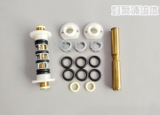 气动隔膜泵换向杆组装视频材料:换向杆、隔轴、衬套、大小 O型圈步骤:1.先把1个小O型圈套到换向杆一端的凹槽里面,然后放衬套。2.接着按照每1组O型圈配1个隔轴的顺序,依次间隔排列好逐个放上去。3.再接着把另1个衬套放上去,最后剩下的小O型圈套到换向杆另一端的凹槽里。