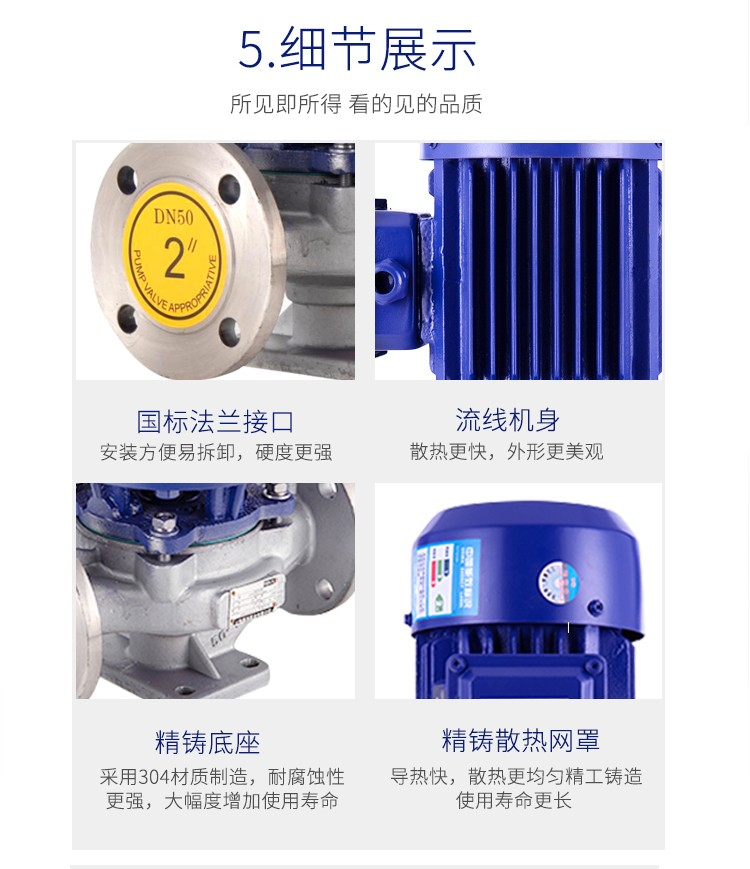304不锈钢管道泵IHG立式离心泵增压泵热水循环泵380V耐腐蚀高扬程随着科技的不断发展,各行各业都在不断地进行着技术创新和技术改进,这其中就包括了泵的领域。泵是一种机械设备,主要用于输送流体,广泛应用于工业、农业、民用等各个领域。而今天我们要介绍的就是304不锈钢管道泵IHG立式离心泵增压泵热水循环泵380V耐腐蚀高扬程。首先,我们来看一下这款泵的材质。它采用了304不锈钢材质,具有耐腐蚀性能,